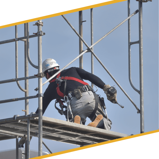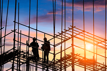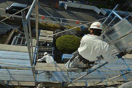 ビルや橋梁、倉庫や発電所など、様々な構造物の建設に必要となる、足場・安全設備を設置します。外壁の塗装や補修のための工事にも必要となります。当然足場の解体も含まれます。